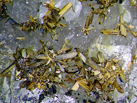 ![]() Ernstit pseudomorph nach Childrenit xx Detail der oben rechts abgebildeten Stufe Bildbreite: 1,8 mm