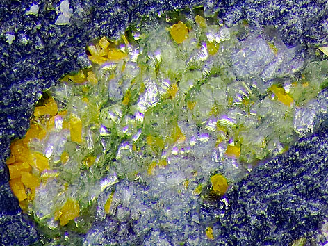 Mosesit xx und Kleinit xx Detail der links abgebildeten Stufe Bildbreite: 3 mm
