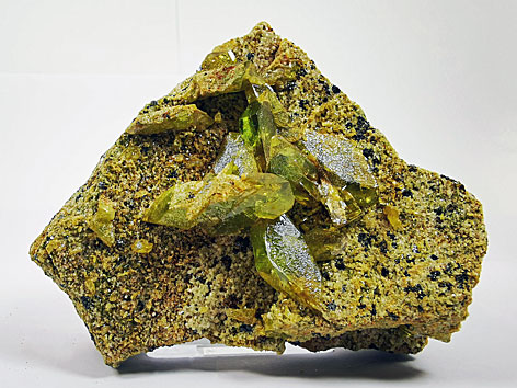 gelbliche Titanit xx gemeinsam mit Calcit und Chlorit
