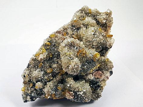 Rasen dünntafeliger, gelbbrauner Baryt xx überziehen eine Brekzie aus Diabas- und Schieferbruchstücken verkittet durch Dolomit Bergwerk Beerwalde, Ronneburger Uranbergbaurevier, Thüringen, BRD Stufe: 13 x 11 cm