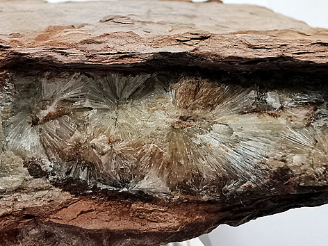 Wavellit xx - farblos bis weiß Nordhalde, Tagebau Lichtenberg, Ronneburger Uranbergbaurevier, Thüringen, BRD Bildbreite: 7 cm
