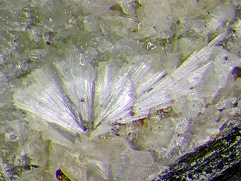 ![]() Adamsit-(Y), weiß Detail der links abgebildeten Stufe Bildbreite: 5 mm