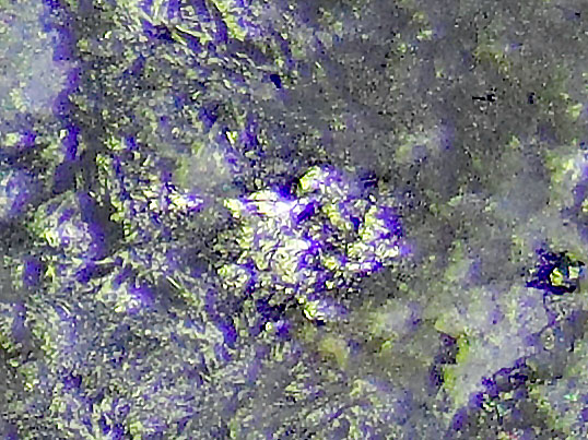 kubisches Kristallsystem; metallisch weiß mit rosa farbton, silbergrau, bleigrau, gelegentlich bornitähnliche Anlauffarben; Metallglanz; als körnige Aggregate bis 3,5 cm Größe und krustige Überzüge. |