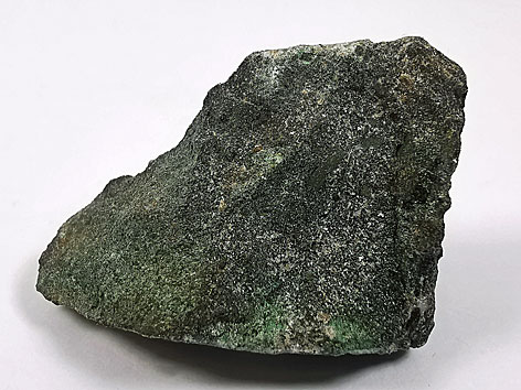 trigonales Kristallsystem; dunkelgrün bis grünlichschwarz. Chrom-Dravit bildet meist dunkelgrüne, pyramidale Kristalle von unter einem Millimeter Größe. |