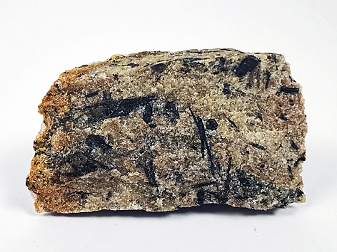 triklines Kristallsystem; schwarz; pseudomonokline, längliche, poikiloblastische Kristalle bis 4 cm Größe, selten in strahlenförmigen Gruppen. |