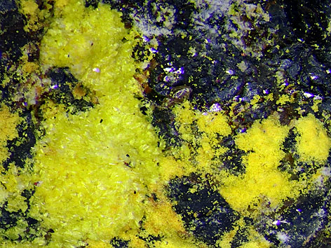 gelbe Natrozippeit-Krusten aus winzigen Kriställchen