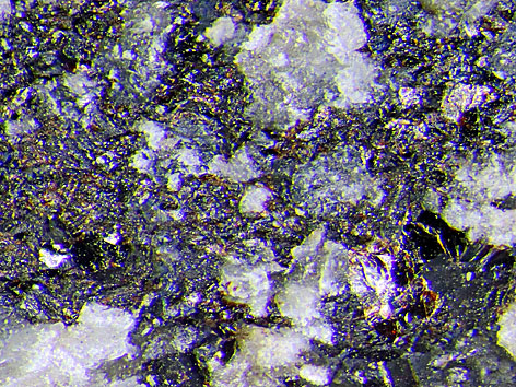 monoklines Kristallsystem; orangebraun, rotbraun, braun, dunkelrot, dunkelgrün, schwarz. Pennantit entwickelt lamellare bis flockenähnliche Kristalle bis etwa 0,5 mm Größe, die gelegentlich zu rosettenförmigen Aggregaten zusammentreten. Oft findet sich Pennantit aber auch in Form von körnigen bis blockigen Massen. An der Typlokalität ist Pennantit schlecht kristallisiert als Flecken und kleine Punkte in der Matrix. |