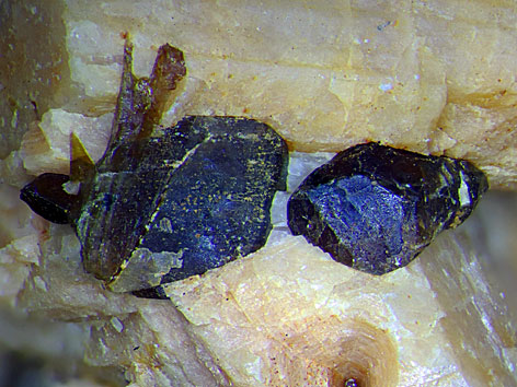 Tadzhikit-(Ce) xx auf Feldspat Dara-i-Pioz Gletscher, Alai Range, Tien Shan Gebirge, Republik-unterstellte Gebiete, Tadschikistan (TL) Stufe: 3,1 x 1,7 cm
